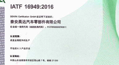 公司擁有IATF16949:2016國際標(biāo)準(zhǔn)質(zhì)量管理體系認(rèn)證,擁有實